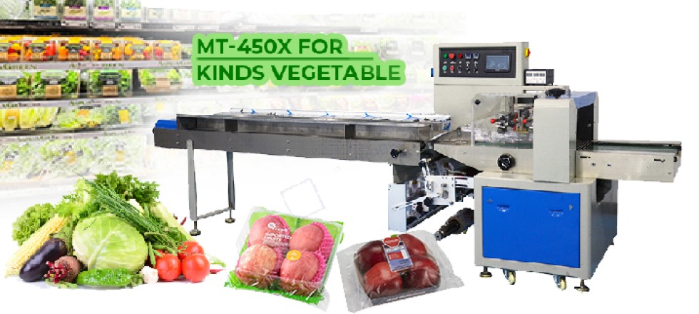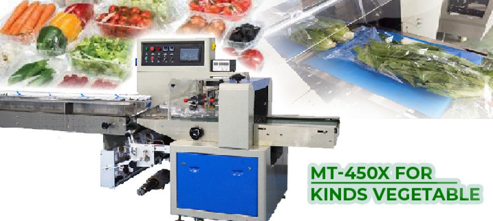 The MT-450X for kinds vegetable horizontal auto packing machine by MUNDO is designed to meet a wide range of packaging needs from single items to multi-piece packs. It is suitable for a variety of products including biscuits, bread, ice cream sticks, honey spoons, dried fruits, towels, paper towels, fruits and vegetables, hardware accessories, chain twists, plasticine, toys, disposable items, hotel supplies, and many more.